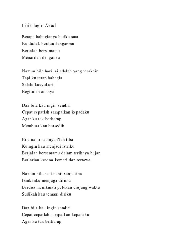 Lirik Lagu Jika Kau Menjadi Istriku / Akad By Payung Teduh Pdf - Sampai nanti akhir hayat ku.